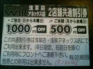 これは期限の切れた割引券(笑)精算は毎払いでフロントで割引券をくれました